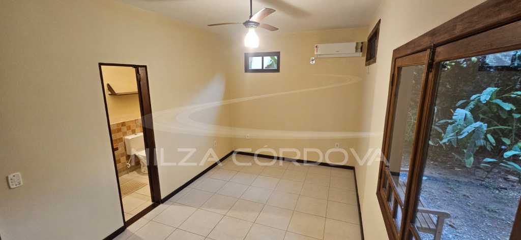 Suíte com ventilador de teto.